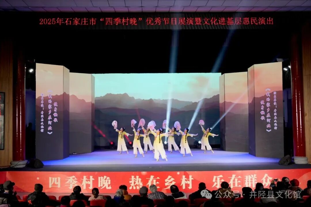 此次活动汇聚了来自各县(市、区)精心遴选、独具特色的优秀“村晚”节目,分为“根脉乡牵”、“暖意乡韵”、“欢歌乡情”、“同心乡望”四个篇章,它们如同散落于太行山麓、滹沱河畔的璀璨明珠,在此串联成一条光彩夺目的文化项链。我县表演的国家级非遗井陉拉花《这里山花别样红》、拉花健身秧歌《我的家乡在河北》,展现了井陉拉花的独特魅力、传播了井陉“三千年文化长廊”的深厚文化底蕴。
