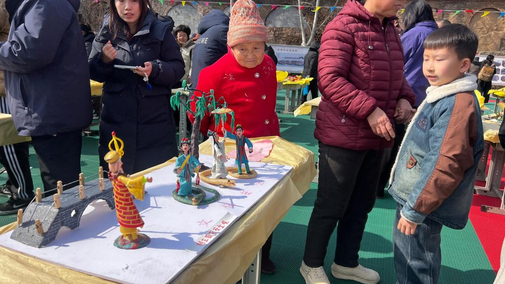 庙会现场,省级非物质文化遗产“南张村面塑”主题作品展台格外醒目,围绕“文化安全”“社会安全”打造的面塑作品造型精巧、寓意鲜明,吸引了众多村民驻足观赏、细细品味,大家在感受非遗魅力的同时,沉浸式领悟国家安全教育的深刻内涵。