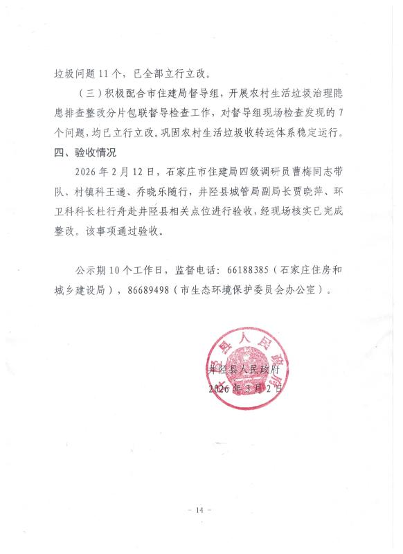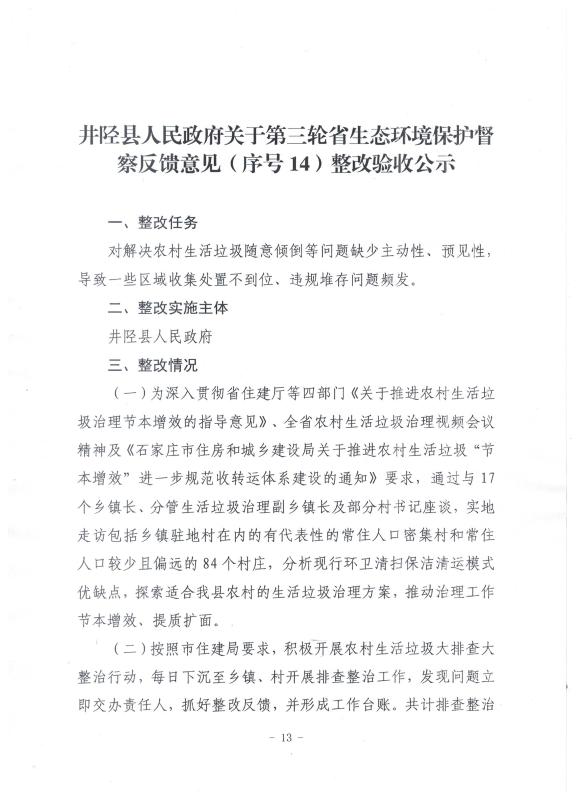 井陉县人民政府关于第三轮省生态环境保护督查反馈意见(序号14)整改验收公示
