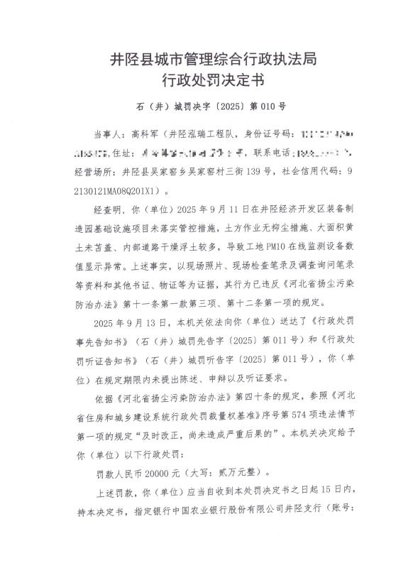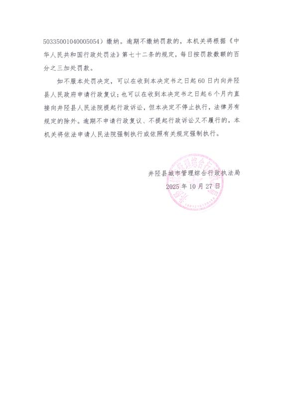 井陉县城市管理综合行政执法局2025年行政处罚决定书(010)