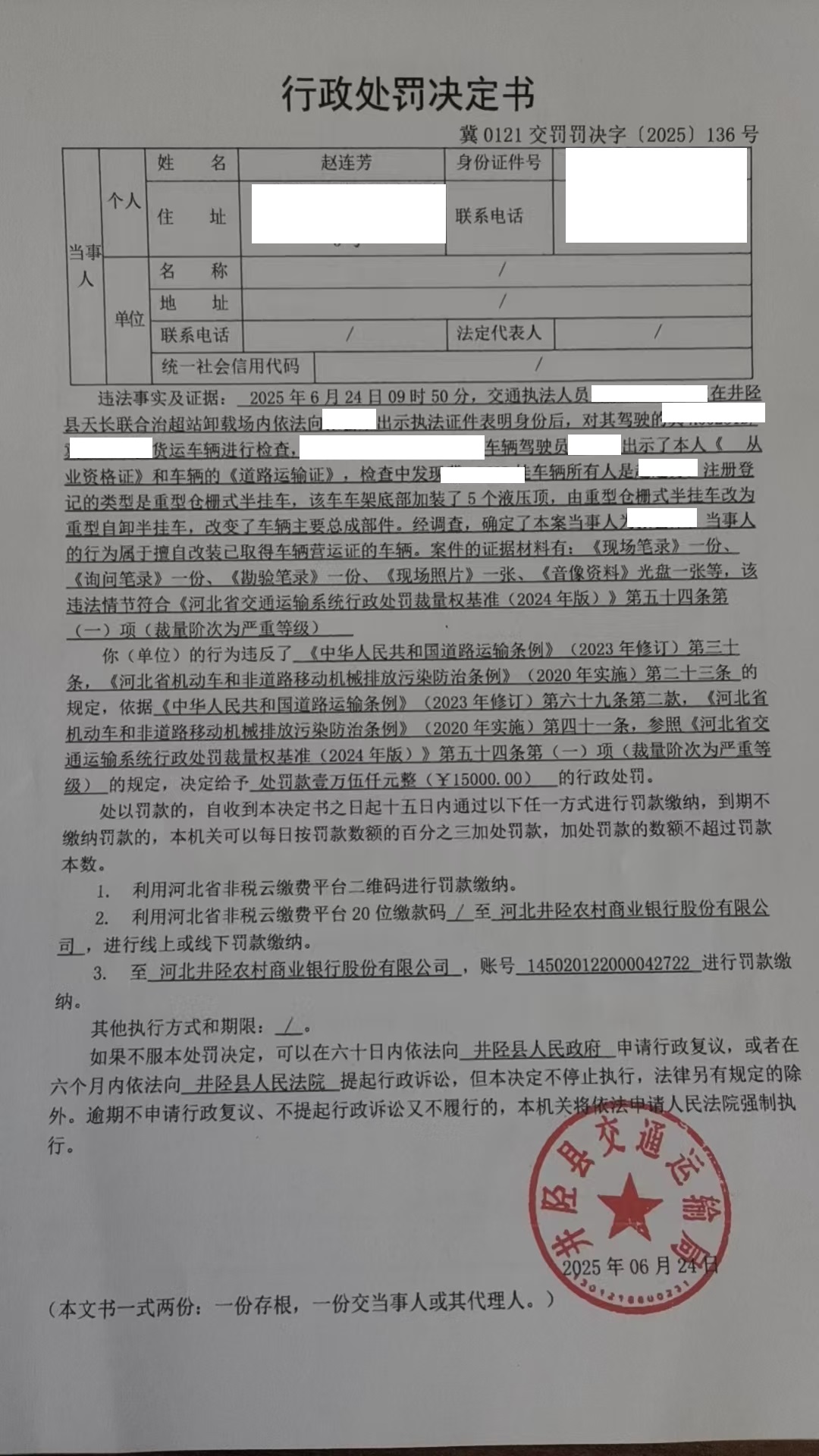 赵连芳擅自改装已取得道路运输证的车辆参加道路运输经营活动案