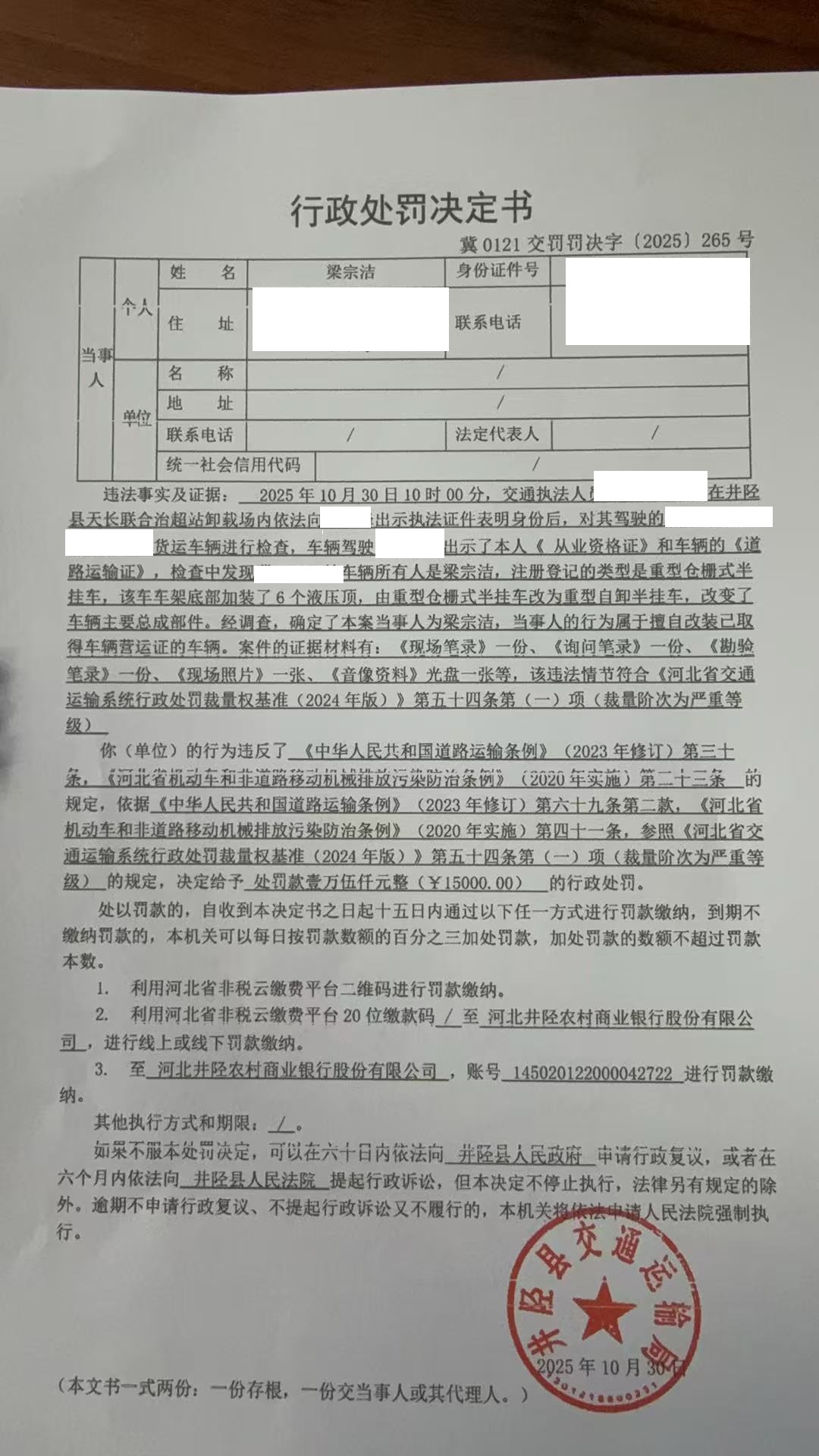 梁宗洁擅自改装已取得道路运输证的车辆参加道路运输经营活动案