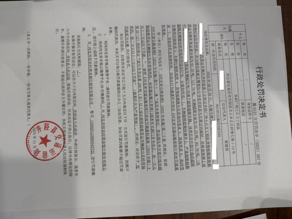 井陉广坤土石方工程队未按规定装载货物,并放行超限超载车辆案