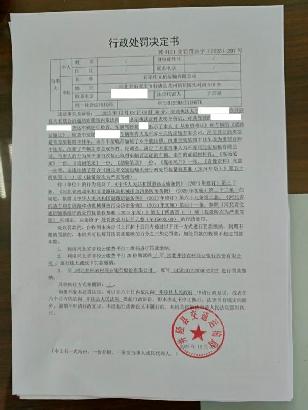 石家庄元佑运输有限公司擅自改装已取得道路运输证的车辆参加道路运输经营活动案