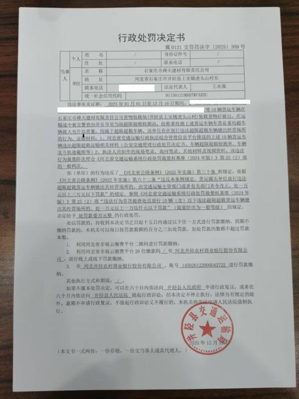 石家庄市舜天建材有限责任公司未按规定装载货物,并放行超限超载车辆案