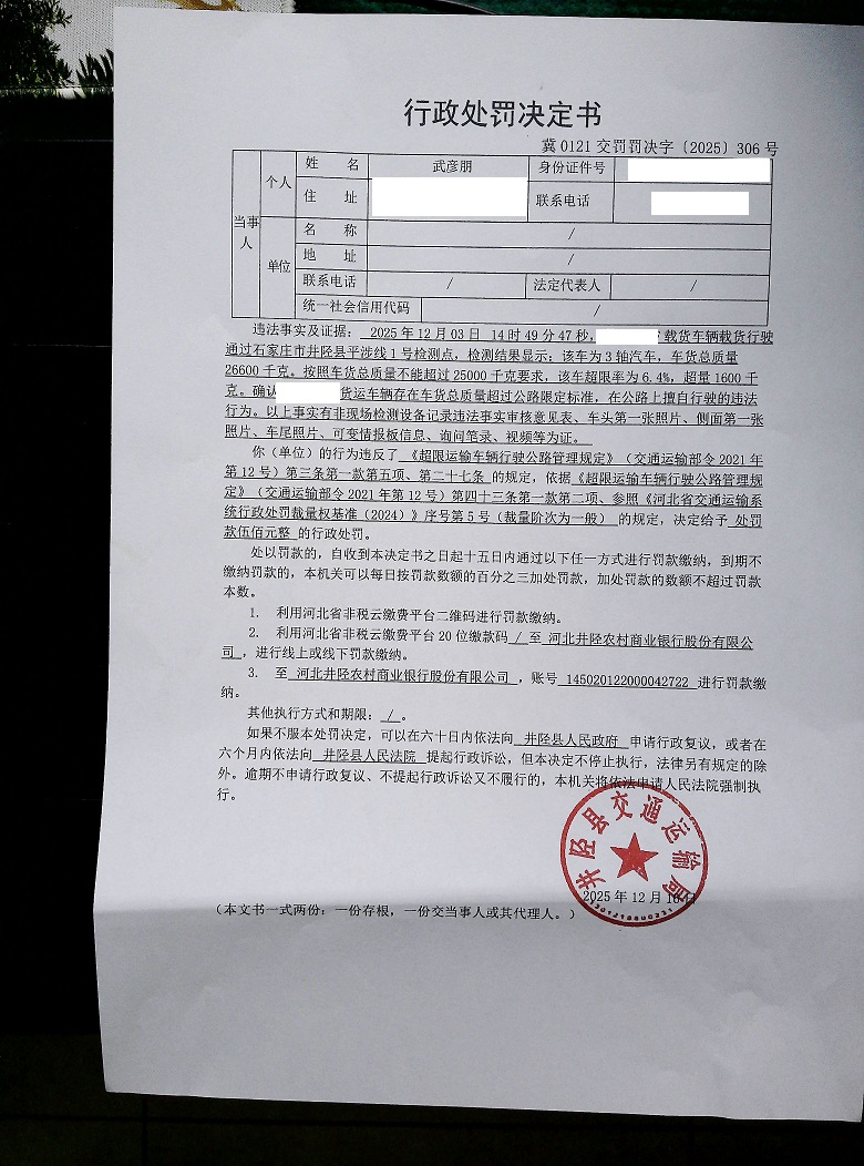 武彦朋存在车货总质量超过公路限定标准,在公路上擅自行驶的违法行为