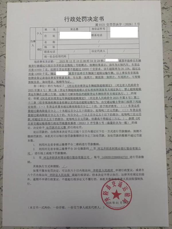 宋志勇经非现场检测设备检测认定的违法超限运输行为案