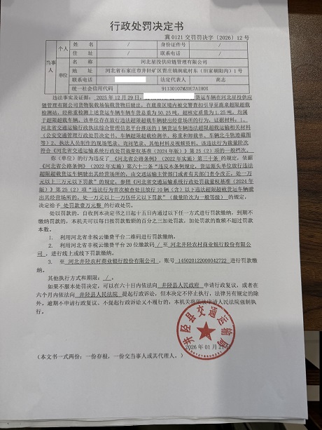 河北星投供应链管理有限公司放行违法超限超载货运车辆驶出其经营场所案