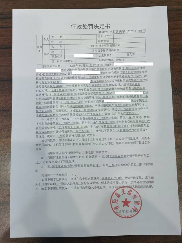 井陉县泽丰贸易有限公司未按规定装载货物,并放行超限超载车辆案