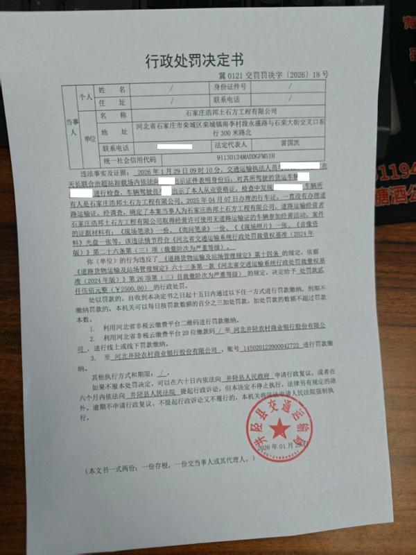 石家庄浩邦土石方工程有限公司取得经营许可使用无道路运输证的车辆参加经营活动案