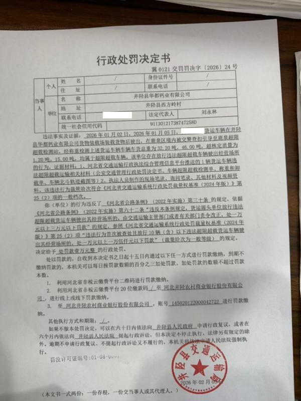 井陉县华都钙业有限公司放行违法超限超载货运车辆驶出其经营场所案