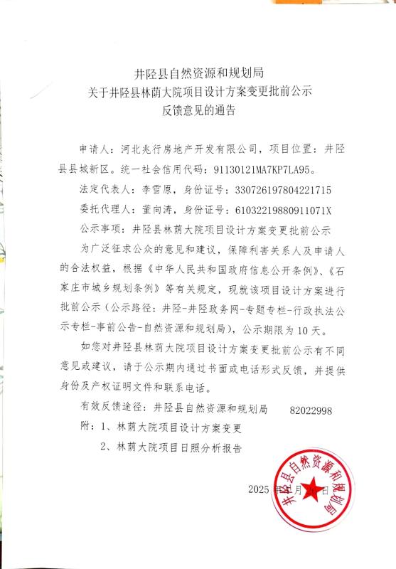 批前公示 河北兆行房地产开发有限公司林荫大院项目设计方案变更