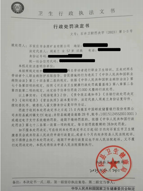 行政处罚决定书(石井卫职罚决字【2023】第1-3号)