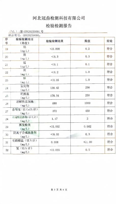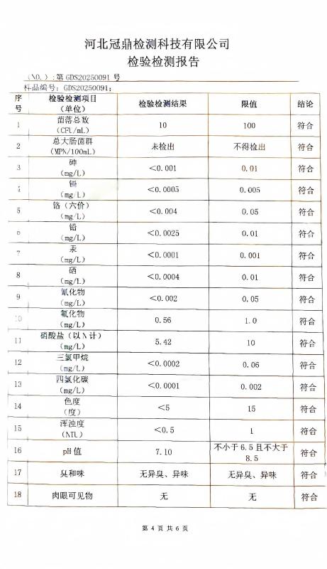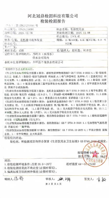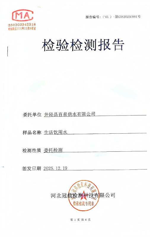 井陉县百泉供水有限公司2025年度第四季度水质检测报告