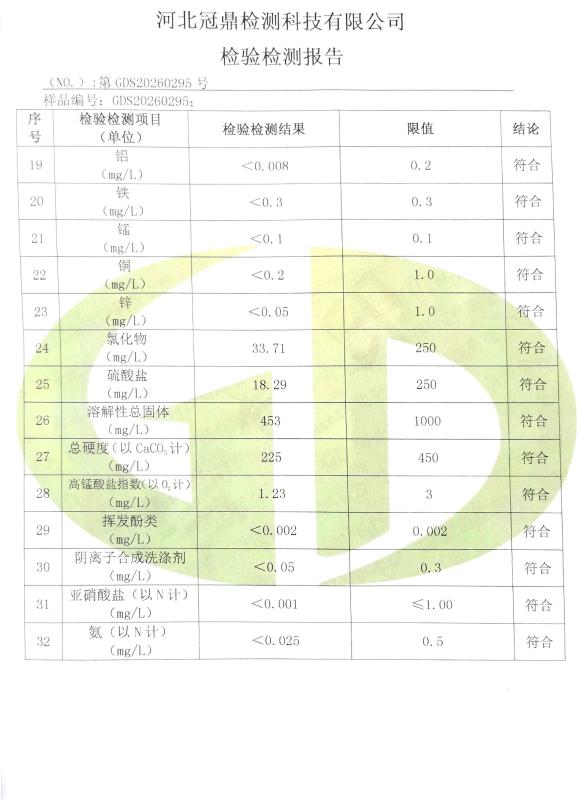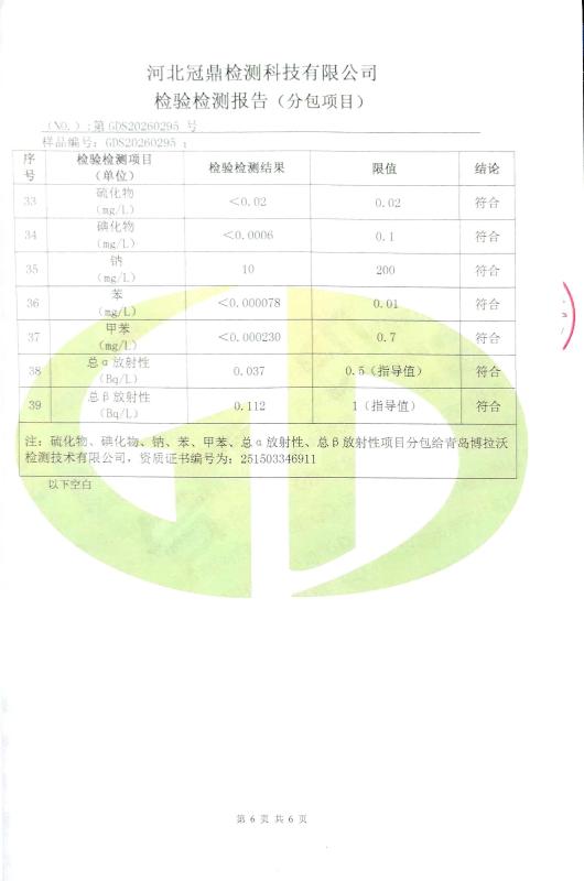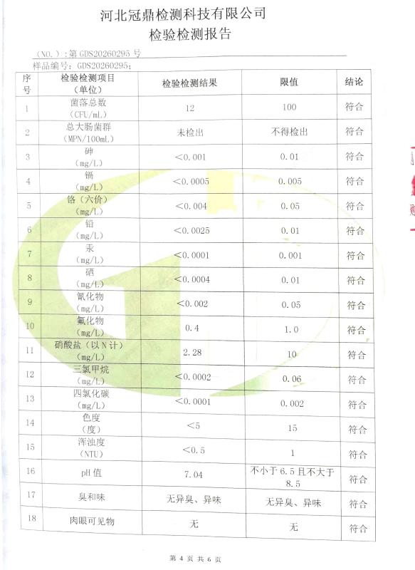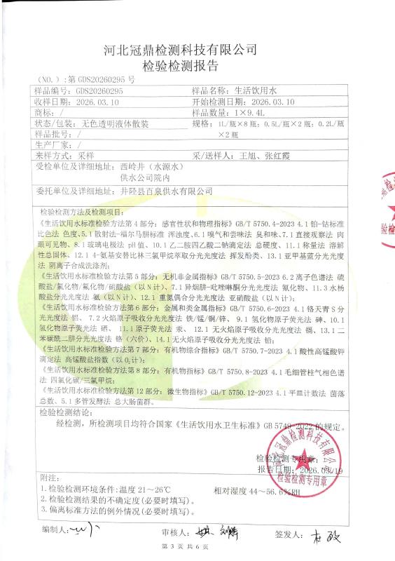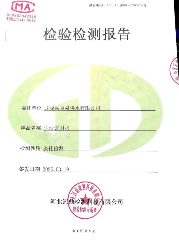 井陉县百泉供水有限公司2026年度第一季度水质检测报告